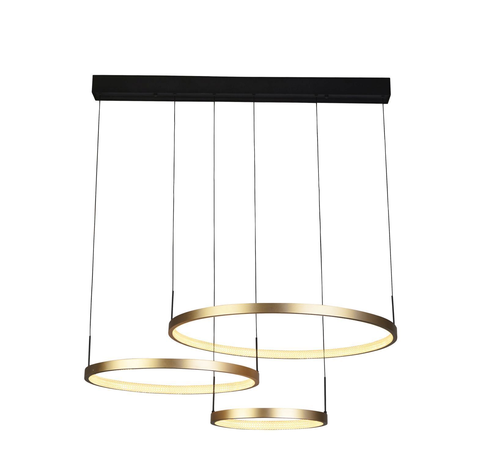 Longue lampe LED suspendue en noir anneaux d'or 112 cm